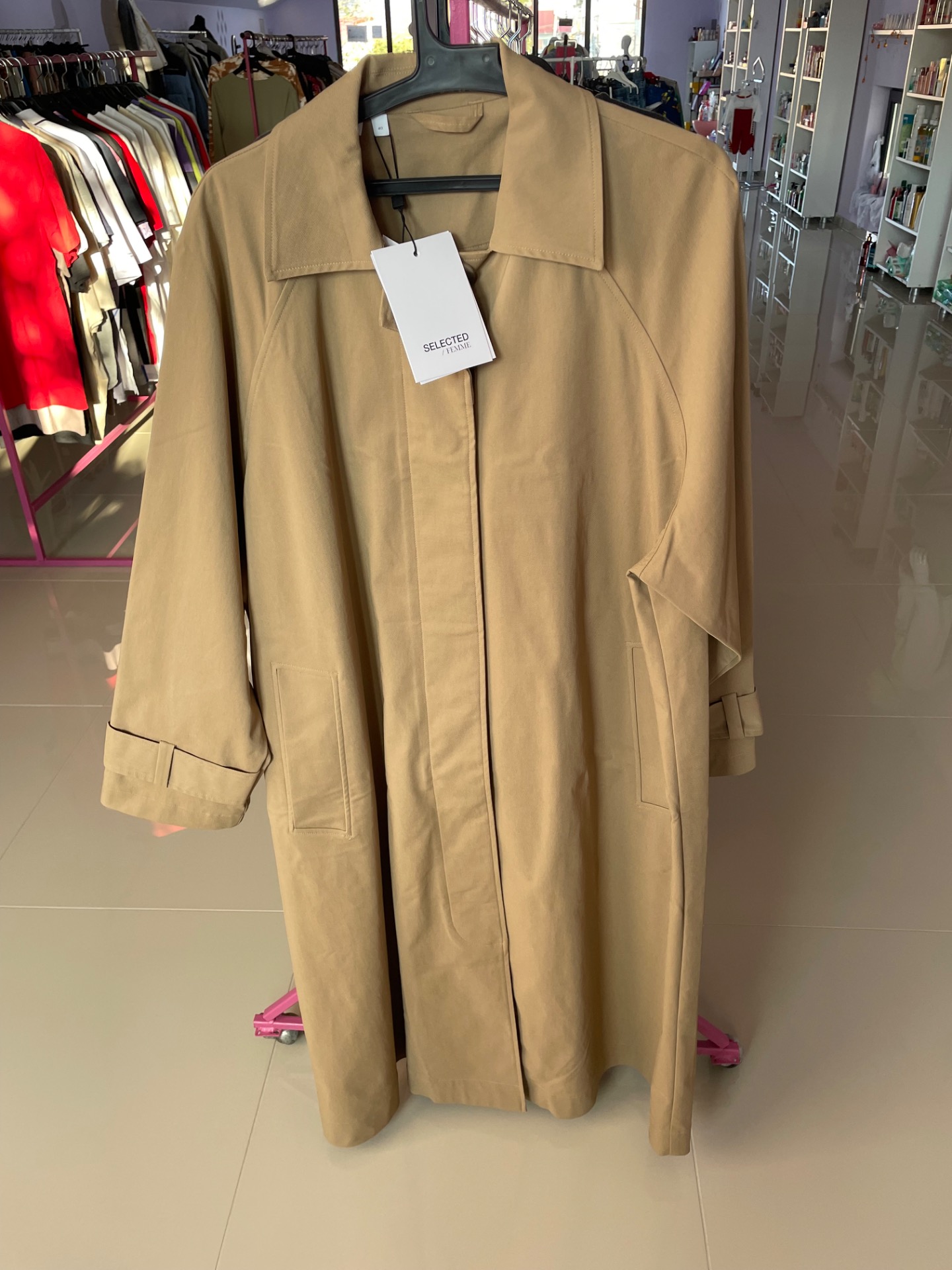 Jacheta/ trench lung marime L - 40material de primavara- toamna ( nu are blana) 57%bumbac, 39% nylon, 4%elastan